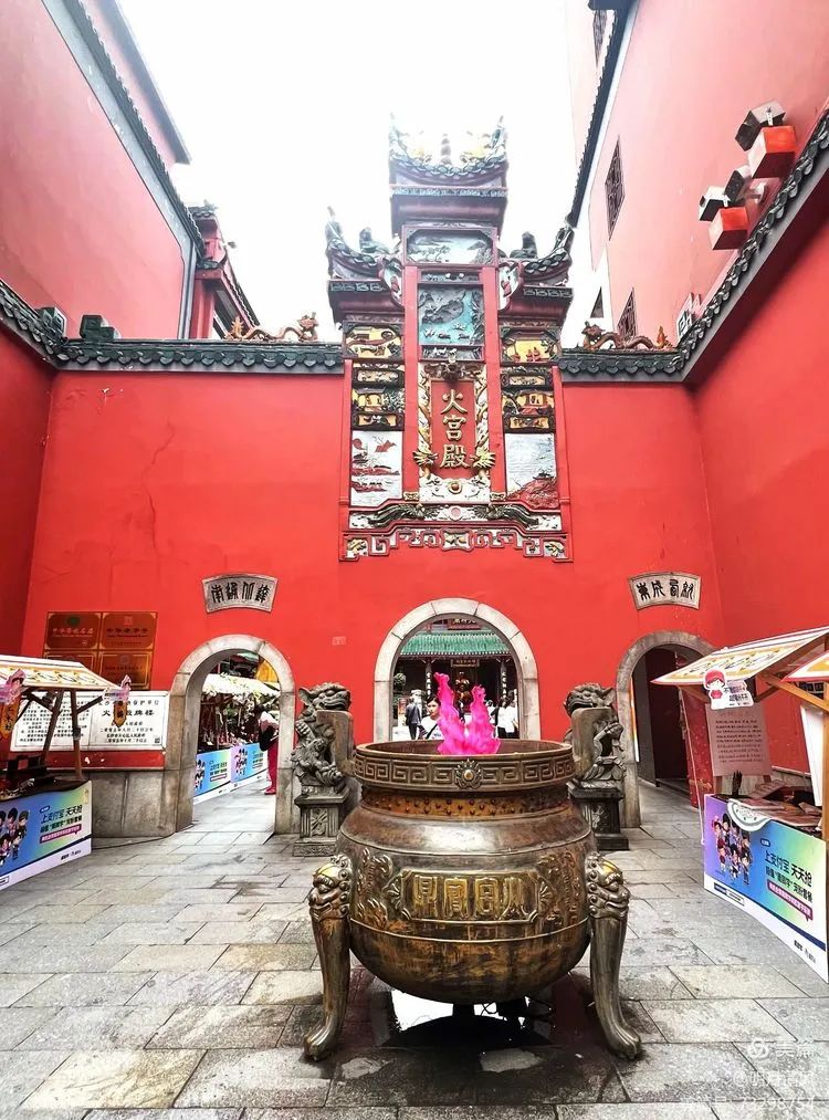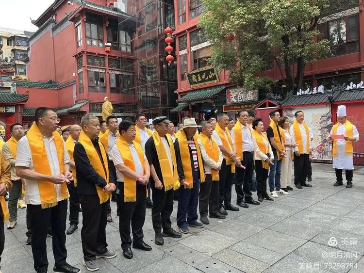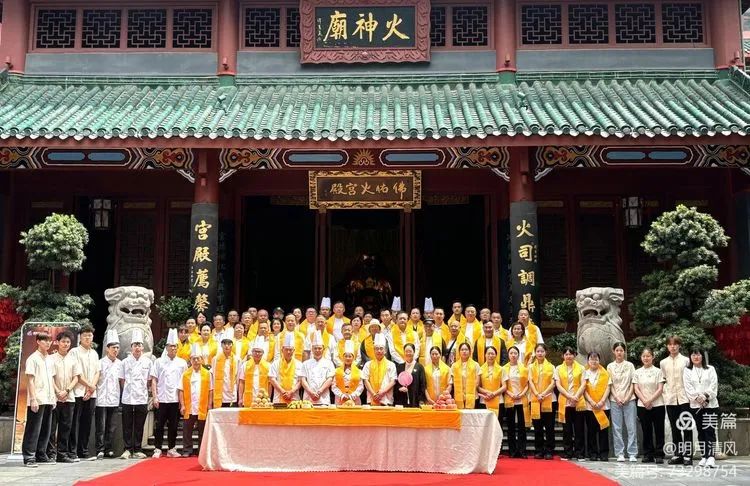 2024年6月5日(芒种),湖南省湘菜产业促进会组织湘菜餐饮行业人员、湘菜文化研究人士在长沙火宫殿火神庙前坪举行祭拜火神仪式(数图)。↓