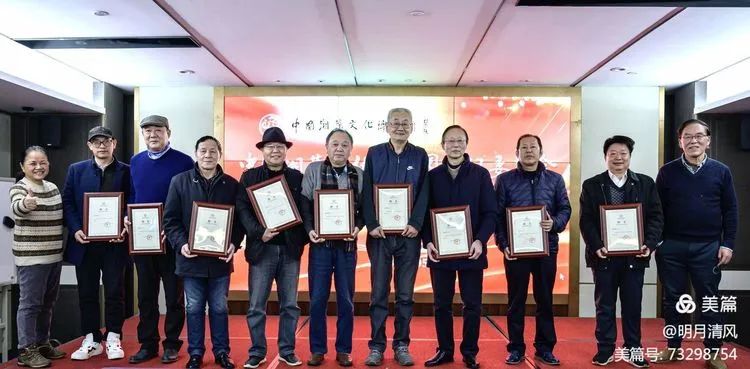 王晓琴副主席(右二)、彭继球副主席(左一),为首届文化名宴评审团文化专家评委颁发《证书》。↓