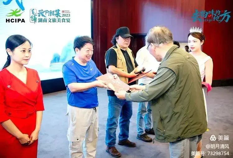 湖南省文旅美食宴评选活动组委会为本届美食宴推广大使颁发《聘书》(2图)。↓