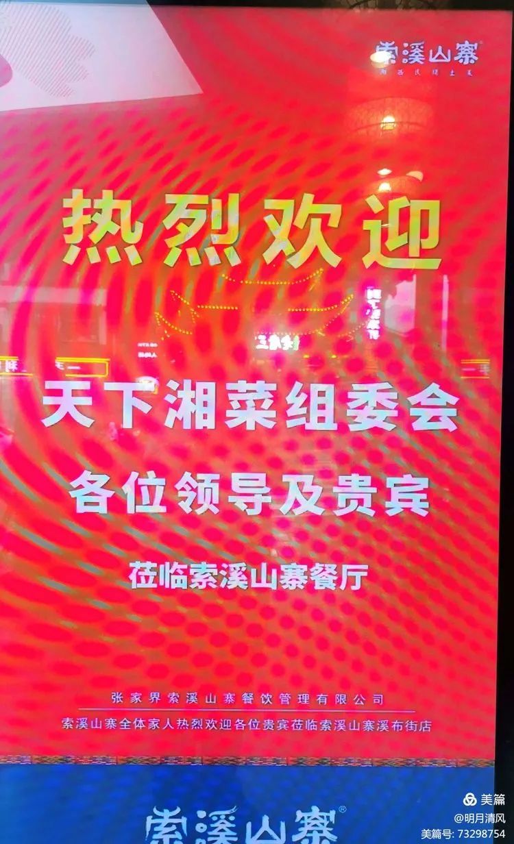 “天下湘菜—2023湖南文旅美食宴”赴全省14个市、州探店评审,受到热烈欢迎。欢迎牌(横幅)之一。↓