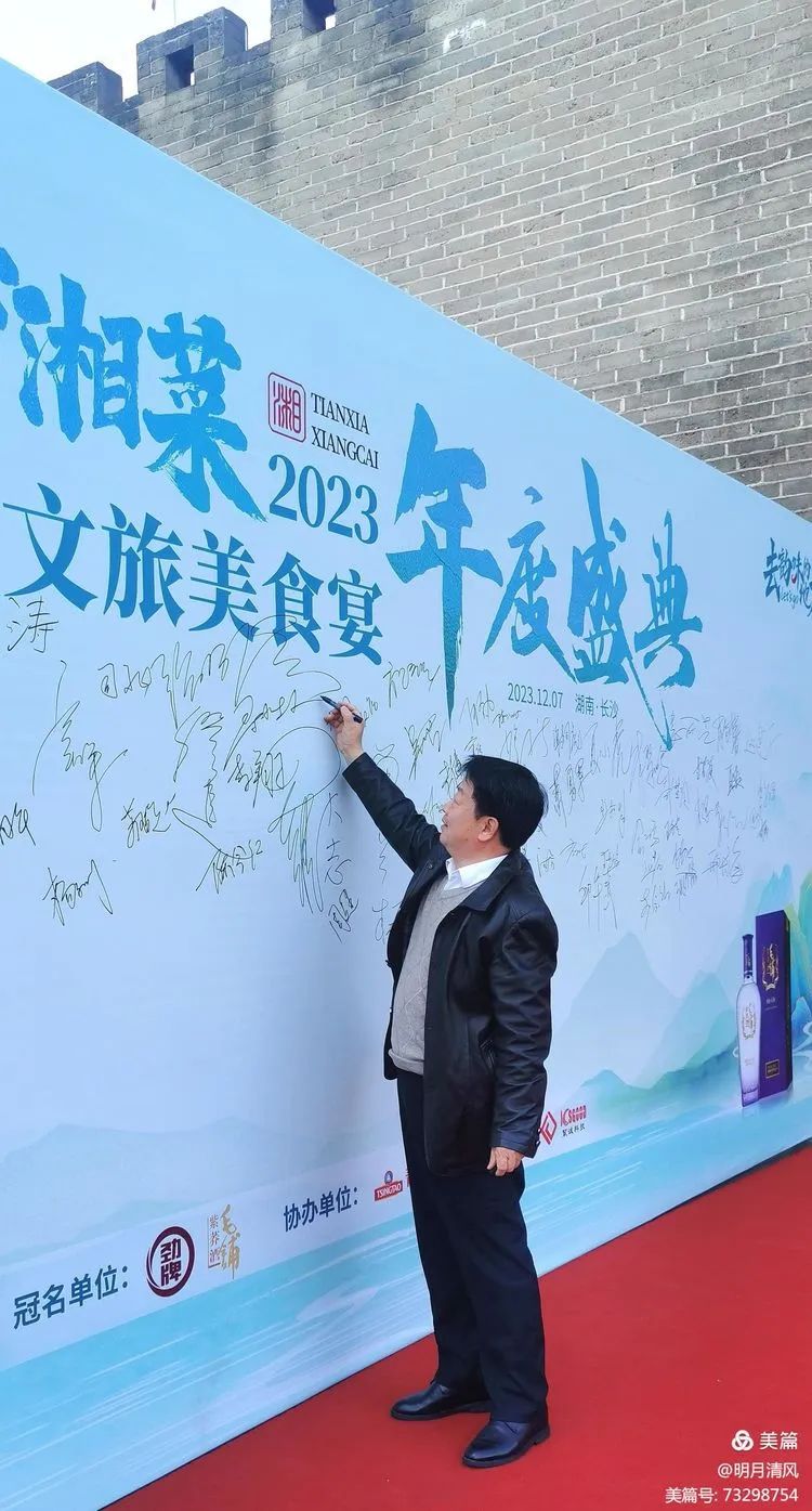 2023年在长沙西湖楼餐饮公司举办年度颁奖盛典。图为到会嘉宾在“签到墙”上签名。↓