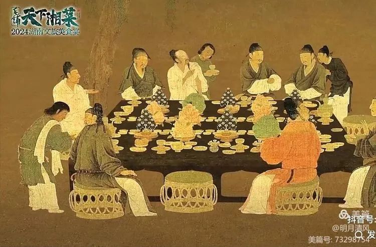 商周时期,中国的膳食文化已具雏形,以太公望最为代表;春秋战国时,南北菜肴风味出现差异;湘菜起源于汉朝,汉代王逸《楚辞章句》:"昔楚国南郢文邑,沅湘之间,其俗信鬼好祠,其祠必作歌乐鼓舞以乐诸神"。每次祭祀活动总是宴饮伴随着舞乐的形式出现。祭天地、拜祖先、庆婚娶、迎宾送客都要聚餐;对菜肴的品种有严格要求,在色、香、味、形上很讲究。