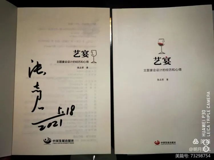 张志君大师著的《艺宴》由中国发展出版社出版、发行(2图,下图为签名页)。↓