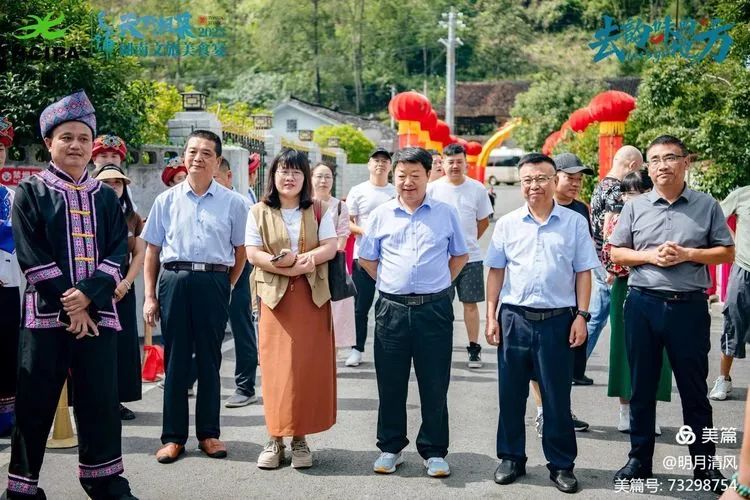 湘西自治州政协党组书记、主席李平(前左一),副书记、副主席宋清宏(右二),州政协原党组书记、主席、州湘菜产业促进会会长刘昌刚(右一)、州政协副主席宋维金,经科委主任宋永华(后左一)等州相关单位负责同志迎接省文旅美食宴评审团一行的到来。↓