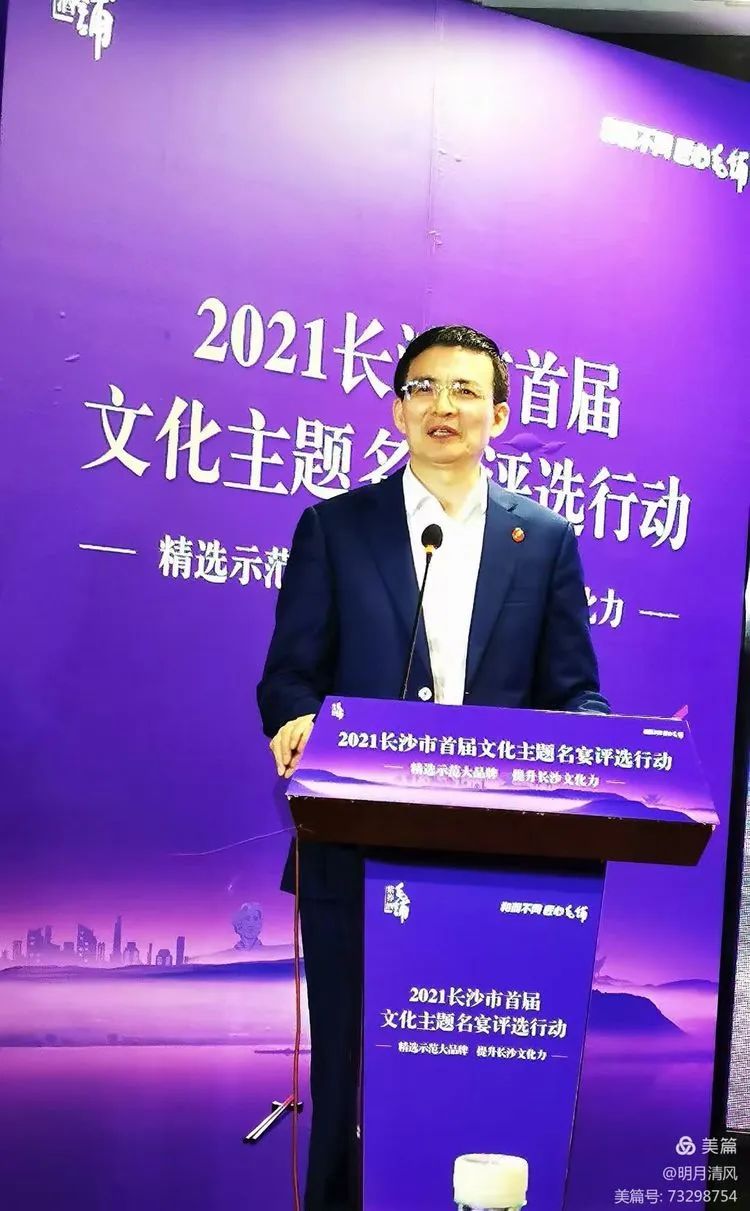 2021年4月23日,长沙市政协副主席彭继球出席首届文化主题名宴评选活动启动式并致辞。↓