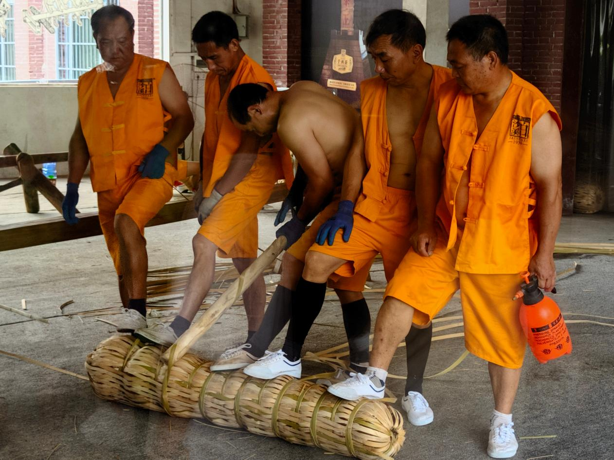 千两茶的制作过程复杂且精细,“揉捻“是其中一个关键步骤。团队成员亲眼见证了这一工序,对古代劳动人民的智慧有了更深的理解,也对他们的创造力感到由衷的赞叹。