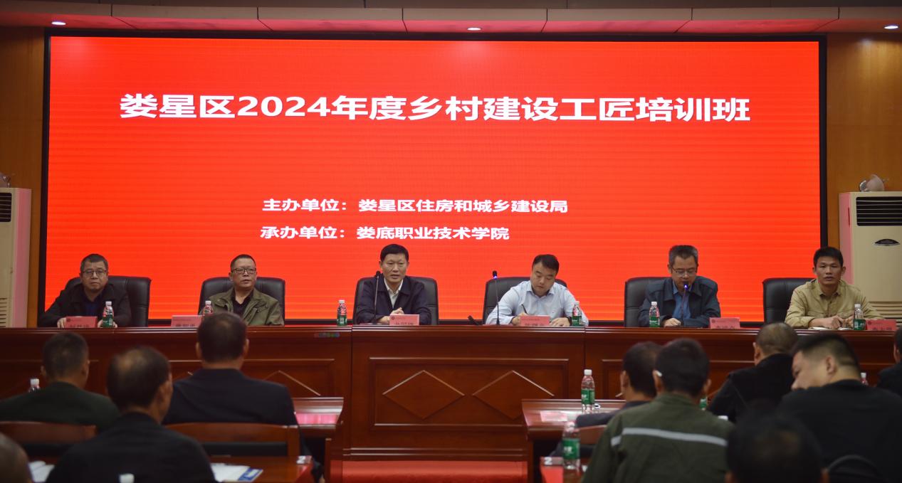 本网讯 10月16日,由娄星区住建局主办、娄底职业技术学院承办的娄星区2024年度乡村建设工匠培训班在娄底职院顺利开班。娄底职业技术学院党委委员、副校长龙国锋,娄星区住建局党组书记、局长陈曙光,娄星区住建局工会主席、自建房事务中心负责人曾智勇,娄底职业技术学院继续教育学院院长刘益洪,娄底职业技术学院建筑工程学院院长李清奇,娄底职业技术学院建筑工程学院党总支书记李志强出席开班仪式,娄底市娄星区各乡镇街道乡村建设工匠(砌筑工)培训报名的198名从业人员参加。