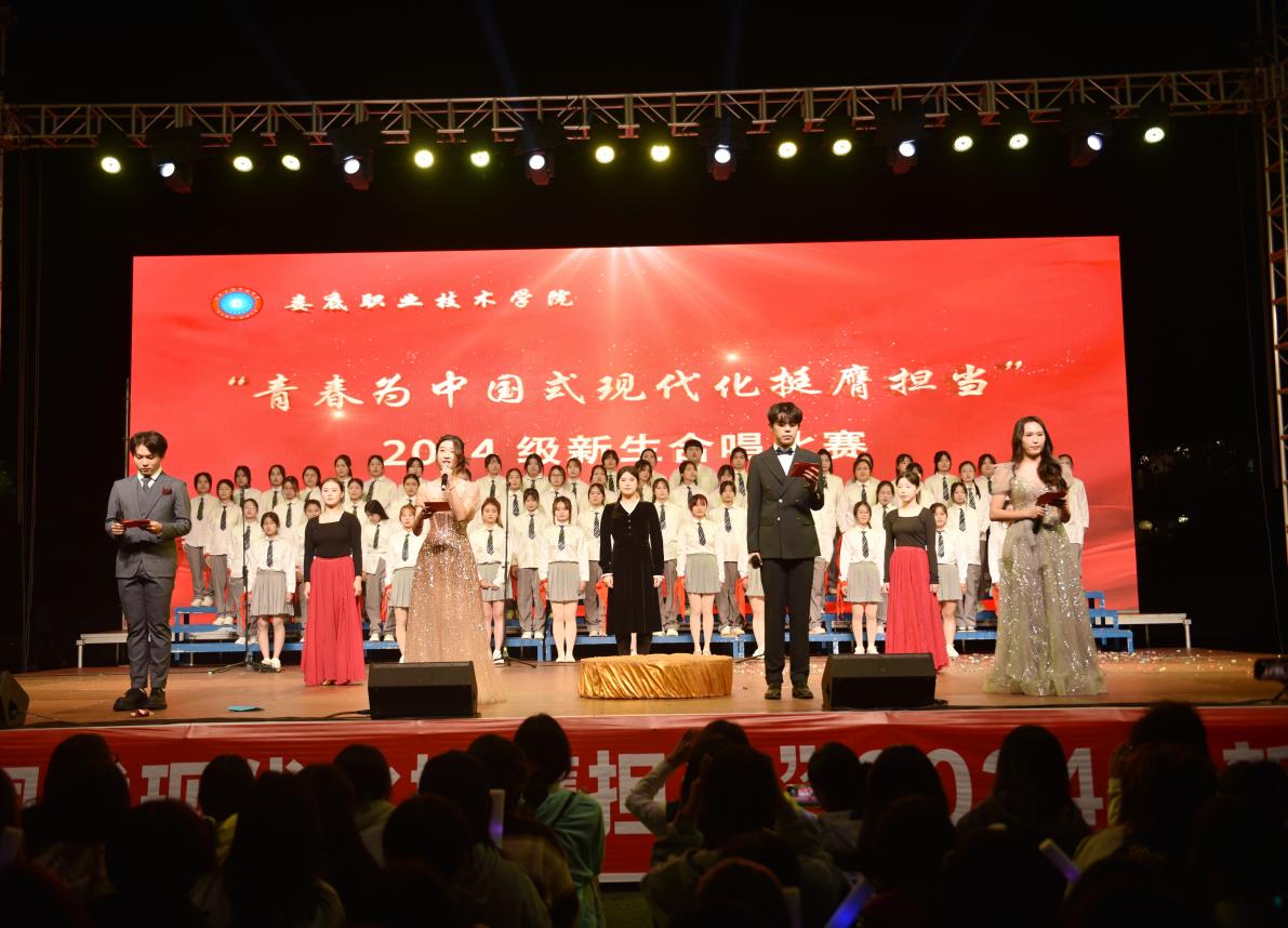 本网讯 10月24日晚,娄底职业技术学院在田径场举行“青春为中国式现代化挺膺担当” 2024 级新生合唱比赛。共青团娄底市委书记罗建湘,娄底职院党委委员、副校长申晓伟,党委委员、纪委书记左学,党委委员、副校长龙国锋出席活动,校团委、学工处等部门及各二级学院负责人、师生代表近万人现场观看比赛,来自各二级学院共9支新生代表队参赛。