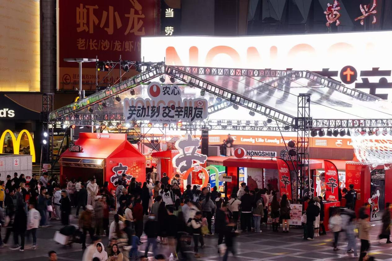 近日,农心辛拉面以限时快闪店的形式在星城长沙黄兴广场开展,本次由宁兴优贝承办的快闪活动吸引了广大湖南美食爱好者的喜爱,大批消费者排队试吃,掀起阵阵“打卡”热潮。