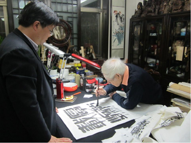 有时,他一边写字画画,一边与我畅聊艺术人生;有时,他会放下手头的活计,坐下来和我们闲话家常,分享生活中的点滴趣事;有时,他还会一边翻着发黄的篆书字典,一边亲眤地喊着“晓茵”的名字,与夫人谢女士商量着某一个字的写法,看得出这对老夫老妻何等的恩爱。那时,我总是亲切地称呼他为“李老”或“立翁”,而他总是微笑着回应,那笑容如春风拂面,温暖人心。在融洽的气氛中,我们不知不觉间度过了快乐的时光。