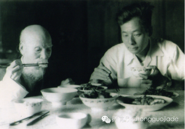 李立(右)与白石老人在用餐
