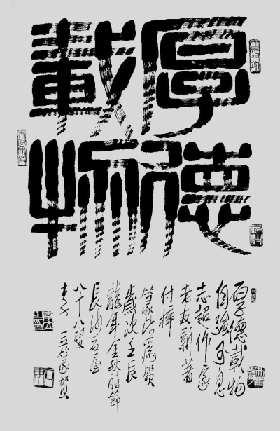 经白石老人点拨,李立先生走上了法古师今、博采众长、独辟蹊径、自造门户的道路,踔砺奋发,突飞猛进,形成了章法严谨、结体合度、刚劲简练、古朴雄奇的风格。