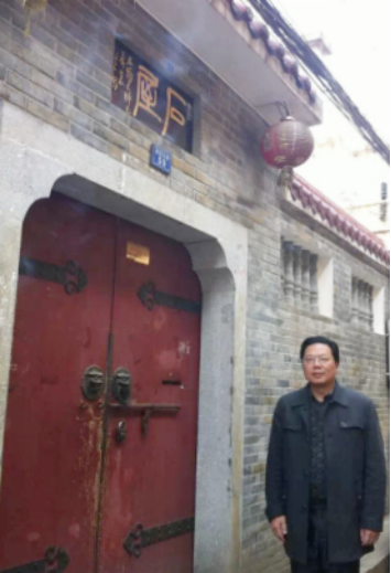 李立先生逝世后,作者在长沙市湘春路西园北里(现已改为历史文化步道)“石屋”(现已建成“李立故居”)前留影。