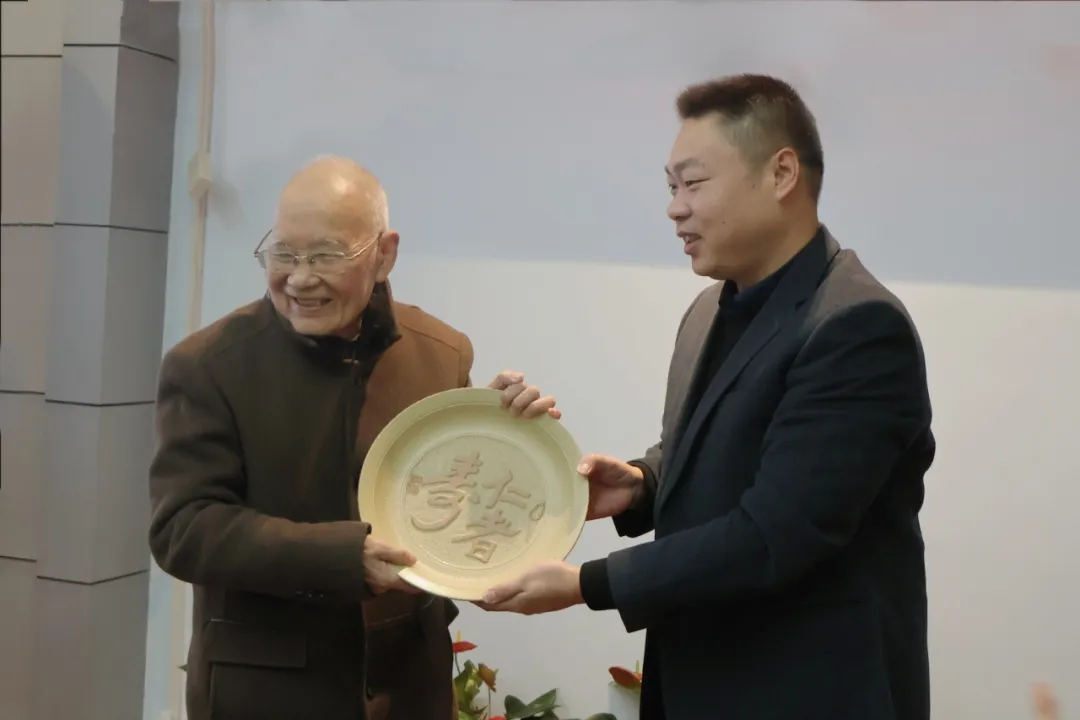 紧接着,大家为韦苇教授送上鲜花与生日蛋糕,共唱生日歌,并送上最真挚的祝福。吴洪涛代表浙江师范大学以婺州窑作为礼物赠予韦苇教授,开幕式圆满结束。