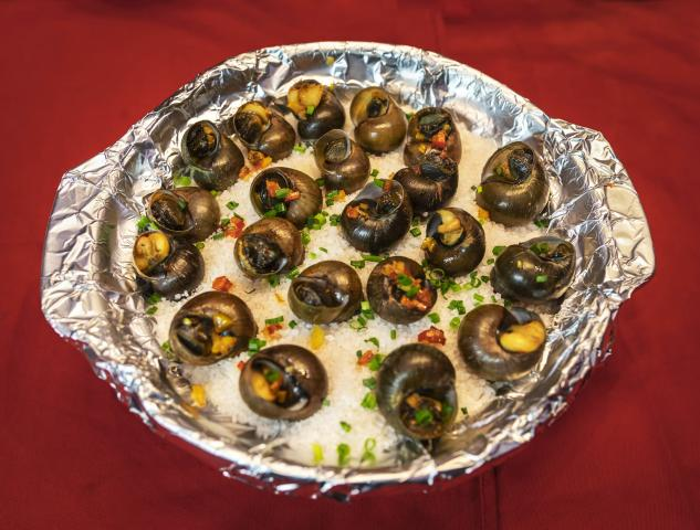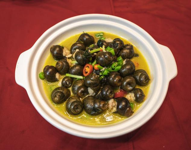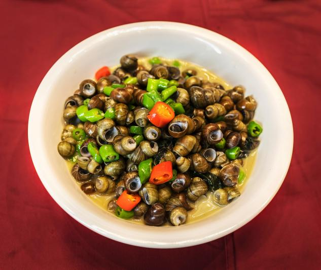 “最多吟兴是潇湘”。潇湘当吟,田螺如歌。田螺盐焗引人入胜,软糯味鲜,浓香厚味,咸香入味,质地鲜嫩不腻口,外脆里嫩,不由得高歌赞叹。