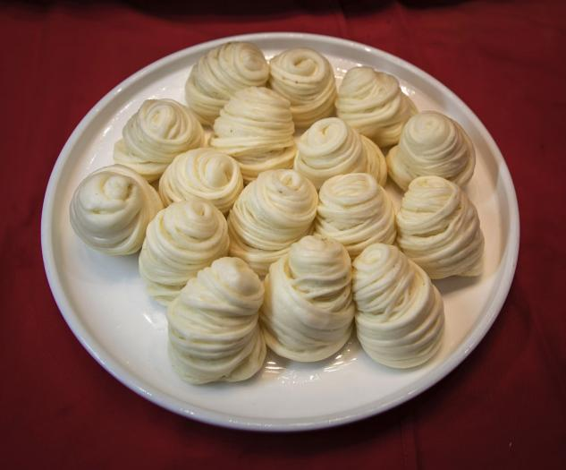 “兰芷芳条洁,潇湘翠色连”。洁白银丝形如螺形,褶细如丝,软滑如髓,鲜香不腻,落口消融。