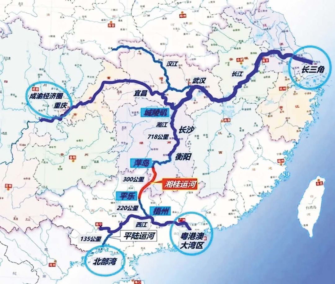 湘桂运河建成后,将为湖南农特产品流向广西、广东提供更便捷的通道。