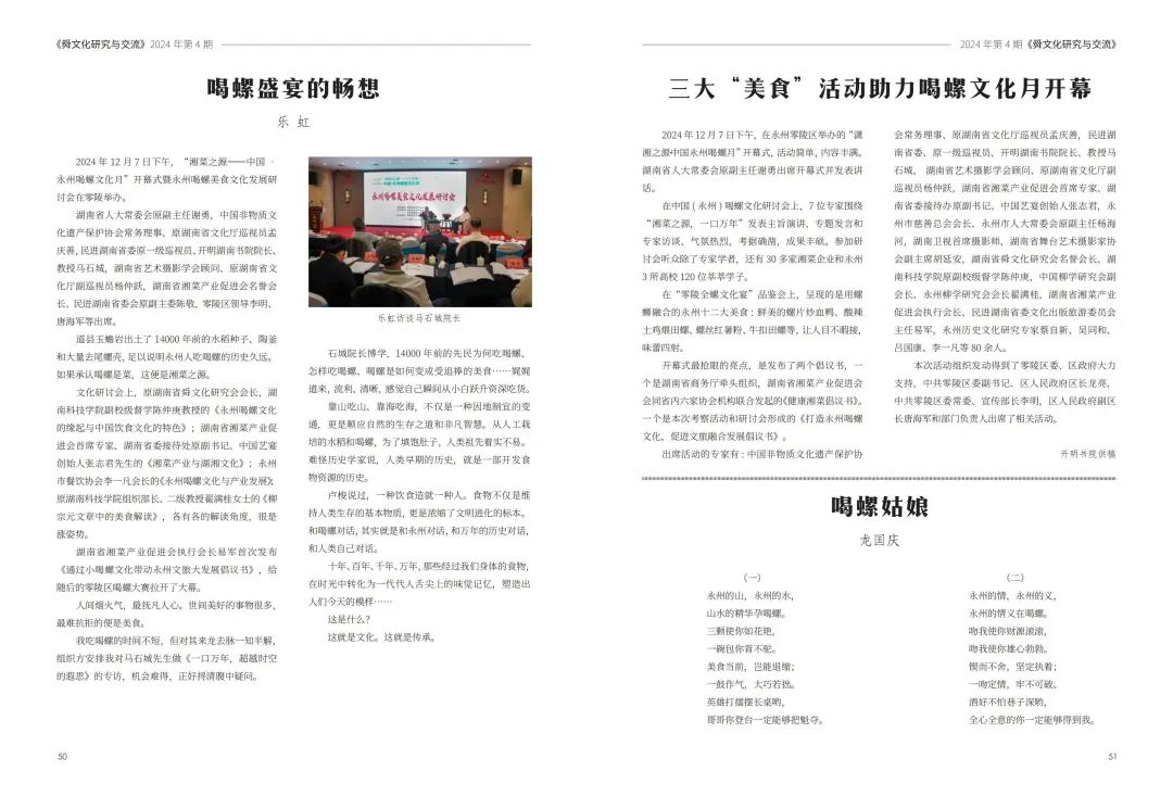 于此,最最让我们感动的是蔡建军、蔡自新、潘雁飞、易军等湖湘之子的积极作为与无私奉献。没有他们的高端策划和亲力亲为,就不会有初春时节东安紫云塘家梯田的踏雪紫云,不会有初秋舜皇山前的虞舜祭祀,不会有深秋永州的文旅美食大宴,更不会有玉蟾岩的炊祖祭典与永州的喝螺大赛,也不会有舜皇山御陛源舜庙寻根,衡山紫金台访古,以及双牌有庳故里的象文化探源…