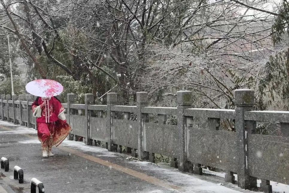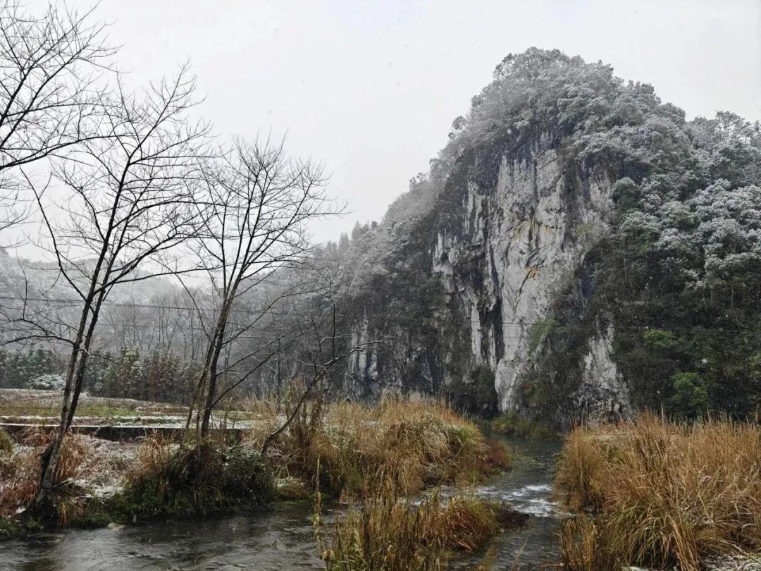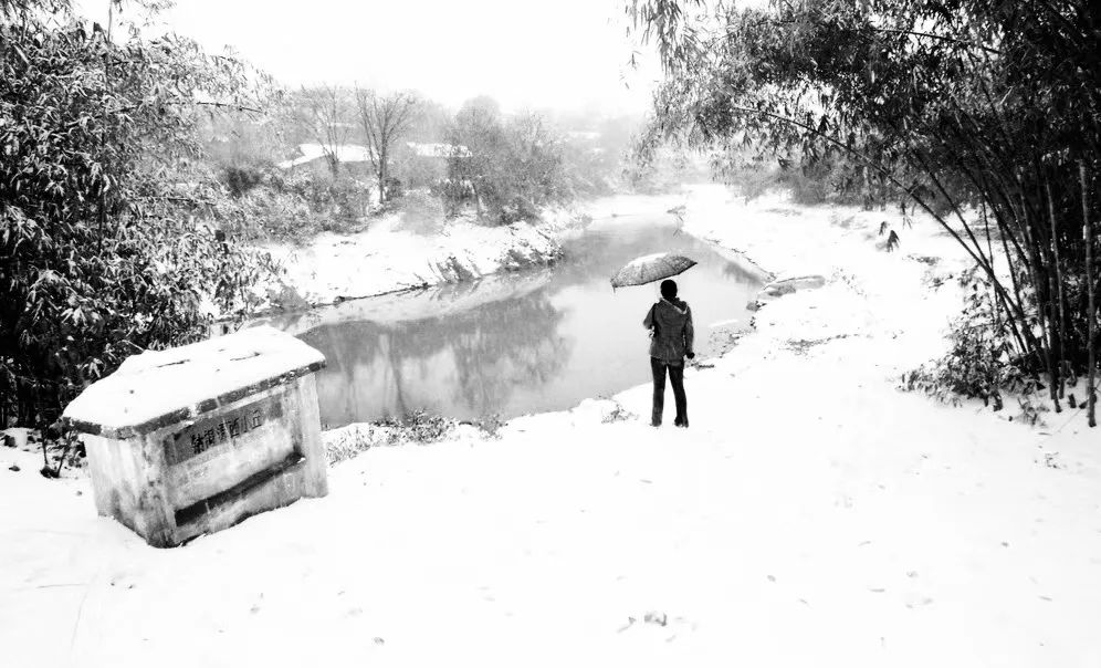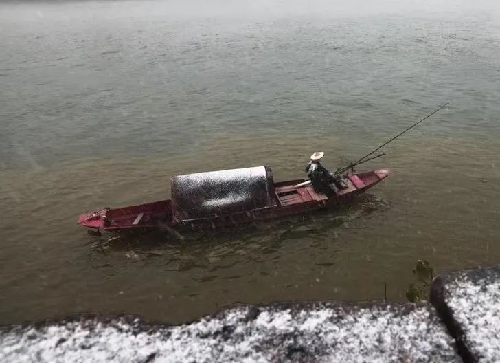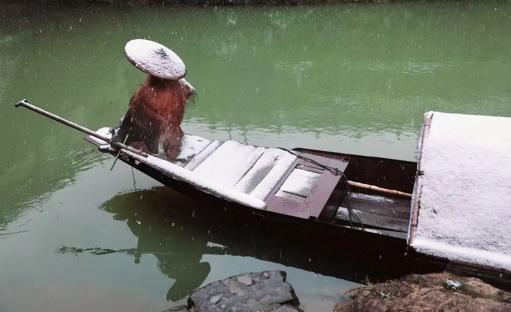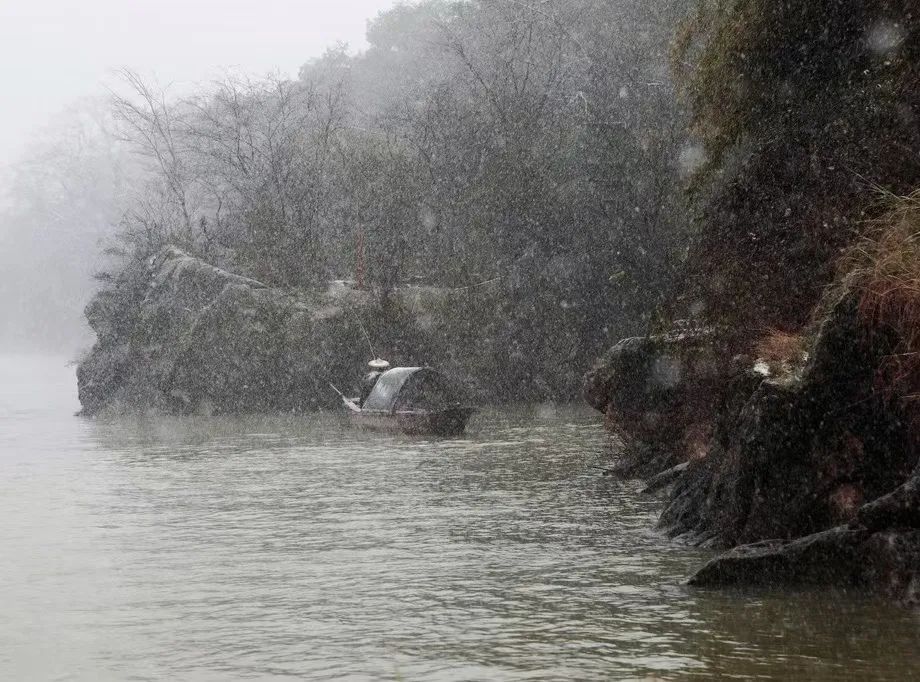 在潇水河畔看寒风卷着飞雪刮过千年霞客渡,转过身来的一刹那,我被意外惊呆了!这不就是那心心念念的“独钓寒江雪”吗?!