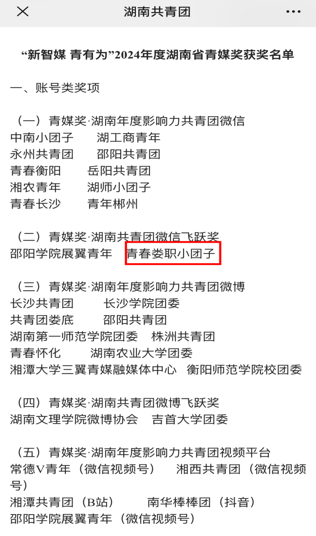 娄底职院共青团微信公众号荣获“湖南共青团微信飞跃奖”