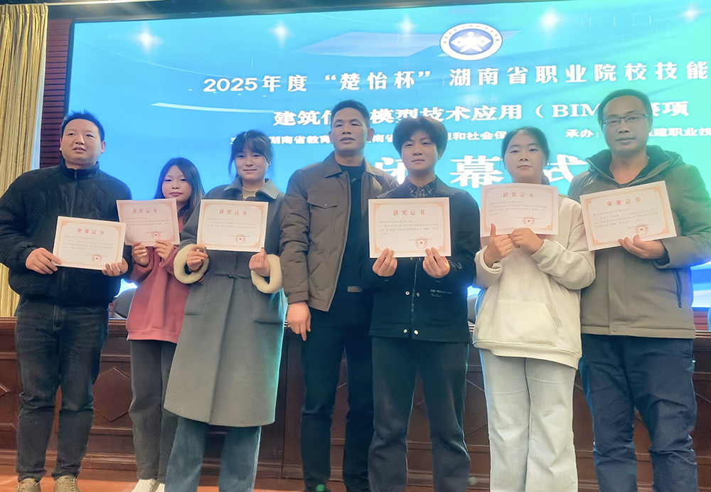 本网讯 3月19日,2025年度“楚怡杯”湖南省职业院校技能竞赛建筑信息模型技术应用(BIM)赛项圆满落下帷幕。娄底职业技术学院建筑工程学院参赛团队凭借扎实的专业知识、精湛的操作技能,在众多强劲对手中脱颖而出,获1个一等奖,3个二等奖。