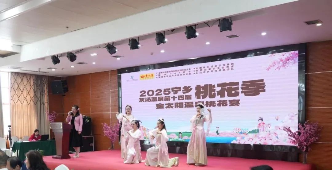 春风拂面,桃红灼灼。3月22日,“以桃为媒·振兴乡村”第十四届宁乡灰汤温泉桃花季在灰汤镇东鹜山桃花谷浪漫启幕。本届活动以“温泉+美食+音乐”为主题,推出“桃花宴”“贡鸭全席”“花猪宴"等特色乡宴,并通过文旅融合助力乡村振兴。其中,灰汤金太阳五星温泉农庄凭借一场融合湖湘春韵与非遗匠心的“桃韵入宴”桃花宴,成为本届桃花季的亮点所在。一席桃花宴,半部湖湘春作为本届桃花季开幕式的“味觉主场”。