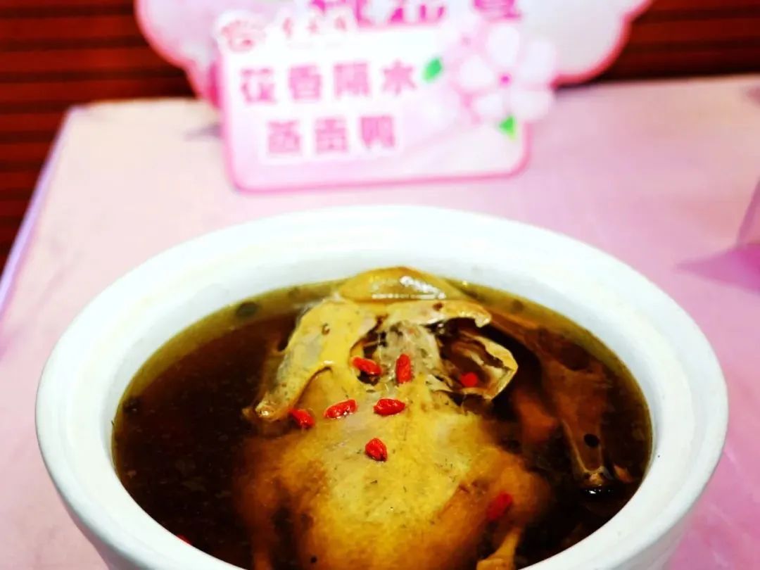 灰汤金太阳五星温泉农庄在湖南省湘菜产业促进会专家指导下,以桃花入馔、以山野为材,特邀湘菜大师团队主理,打造出独具诗意的“桃花秘境”。宴席以“四味头盘”惊艳开场:花香隔水蒸贡鸭经桃花香沁蒸制,汤清肉嫩;温泉长寿鳖肉质红润如玉,尽显养生之韵;桃花谷神仙虾缀以蒜香,寓意鸿运高升;宁乡花猪肉肥瘦相间,诠释湖湘烟火气。后续菜品更将春意融入匠心:手剥豌豆焖春鳝以山野双鲜共舞,玉露桃胶水晶鸡以千年温泉水慢炖出滋补至味,贡椒清蒸翘嘴鱼以非遗黄贡椒点睛鲜麻,笋香农家土腊肉则串联冬藏春发的乡愁记忆。压轴的蒿子粑粑、桃花油菜心等山野清味,更以素雅之姿唤醒春日味蕾。