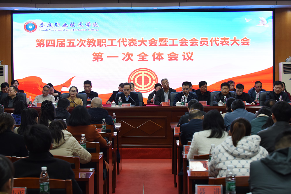 本网讯 3月29日,娄底职业技术学院第四届五次教职工代表大会暨工会会员代表大会在多功能报告厅举行。171名正式代表、12名列席代表、48名特邀代表齐聚一堂,共商学校发展大计。