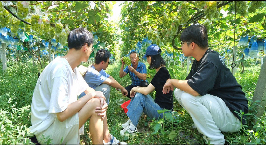除了培训农民,学校还注重培养学生的实践能力和创新精神。每周,曾教授都会组织“楚怡”工匠计划园艺本科班学生和农村新型经济组织管理专业学生到基地开展现代学徒制人才培养。在葡萄架下,曾教授手把手教学,学生们分组劳作,让他们在实践中学习农业生产管理与技术知识,了解农村发展现状。许多学生在真实岗位培养过程中,被乡村的广阔天地所吸引,毕业后选择留在农村创业就业,为乡村振兴注入了新鲜血液。