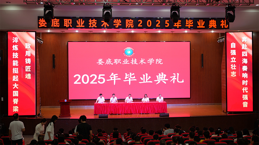 本网讯 6月26日,娄底职业技术学院举行2025年毕业典礼。全体校领导出席,各部门、单位主要负责人,各二级学院的学生管理人员,2025届毕业班级辅导员及教师代表,2025届毕业班级辅导员及教师代表,2025届毕业生代表和在校学生代表共同见证这一庄严时刻。
