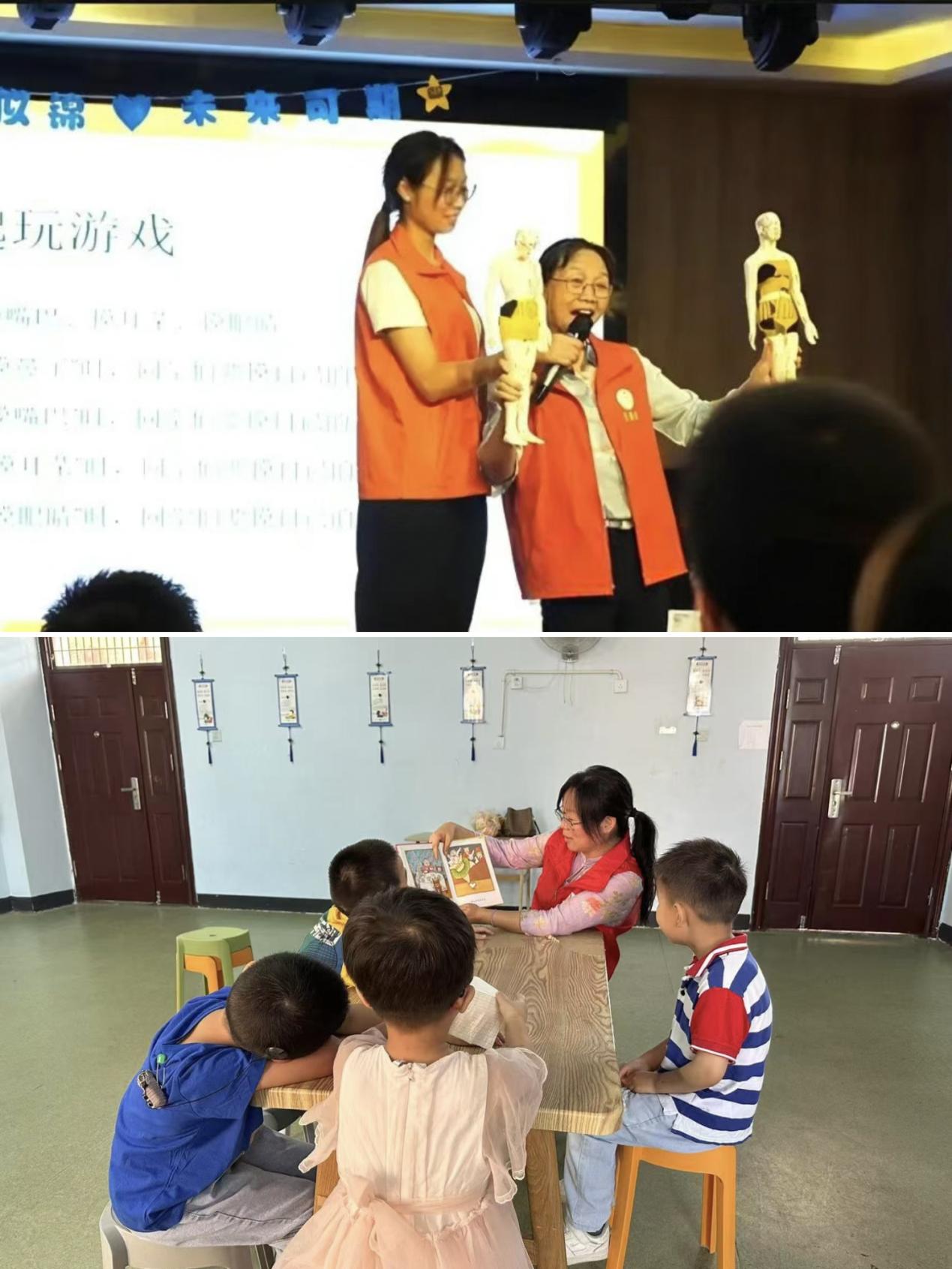 活动中,李翠华老师以“防性侵——我的身体我做主”为主题,通过生动的讲解、人体结构模型展示和互动问答,为孩子们上了一堂实用的自我保护课,帮助他们树立安全意识,学会守护自身权益。随后,大学生志愿者们发挥创意与活力,带领孩子们开展了丰富多彩的互动活动:讲故事时,孩子们听得聚精会神;唱歌跳舞环节,大家载歌载舞,笑声不断;绘本共读时光,志愿者与孩子们一起在文字与图画中感受美好。整个福利院洋溢着温馨欢乐的氛围。