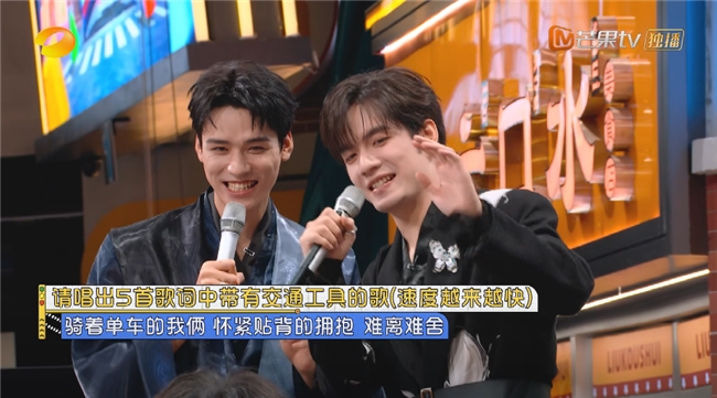好六江湖,暗流涌动。节目刚开场何老师就宣布两个门派中都有对方的卧底,直接把现场紧张感拉满!首轮游戏按要求接力唱歌,让“有卧龙的地方就有凤雏”这句话的含金量再次上升:“六个门”前有马伯骞一开嗓就结束挑战,后有孟子义被提醒不能念歌词要唱;“暗河门”成员更是各有各的节目,要唱含有兵器的歌,彭小苒唱了刀郎的歌,让何老师直呼卧底演都不演了!下一趴张颜齐唱《单车》忘词,百灵鸟龚俊热心出手,两人唱嗨,喜提何老师化身人形弹幕:刚才是龚俊在教人唱歌吗?