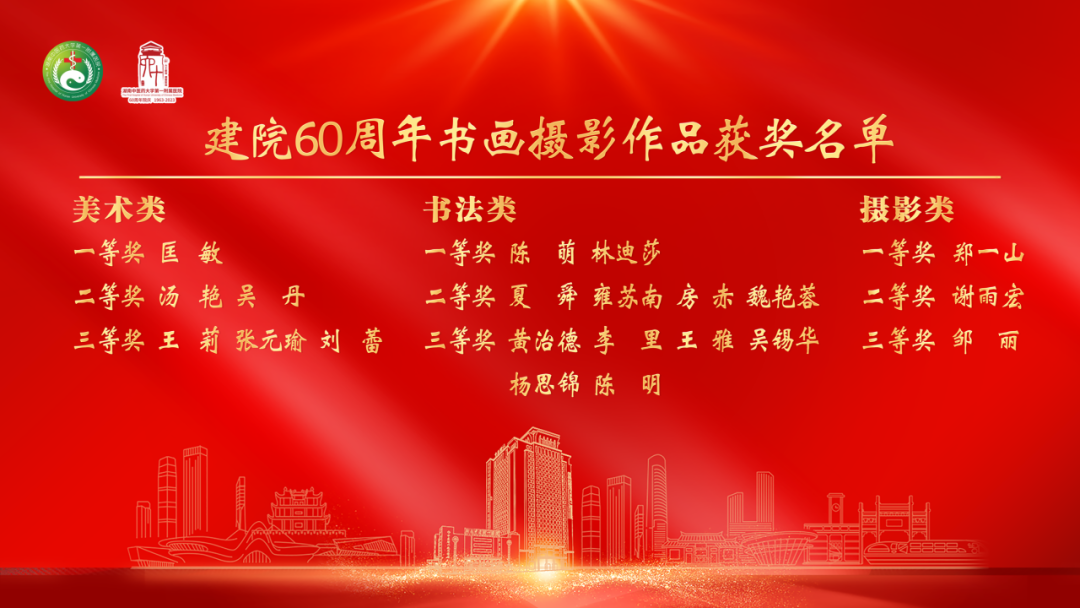 大会还对2023年医院“两优一先”获奖代表,建院60周年短视频大赛、书画摄影作品大赛获奖者进行了表彰。