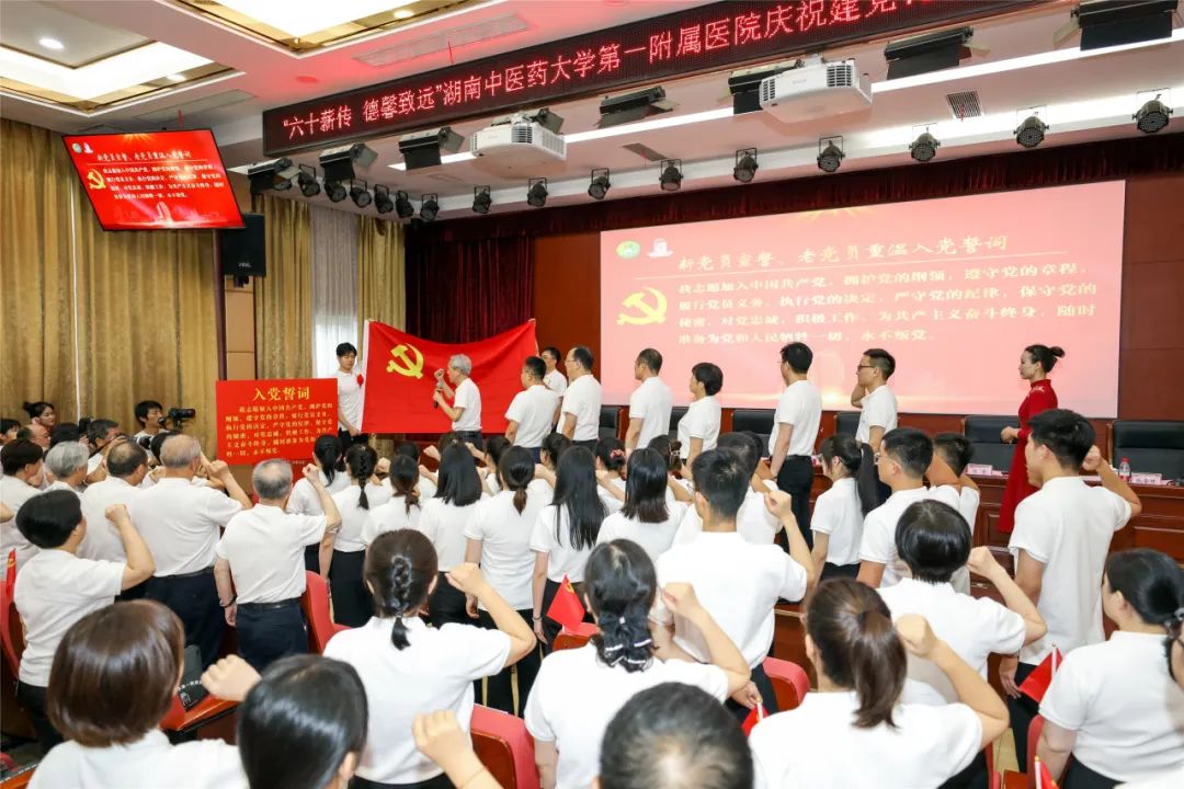 随后,由全国名老中医传承工作室专家、湖南省名中医、老院长谭新华教授领誓,医院新党员进行入党宣誓,老党员重温入党誓词。