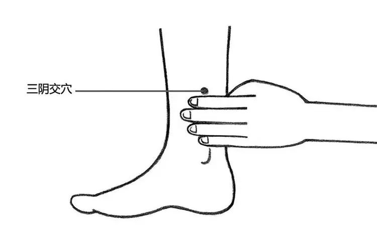 按揉三阴交,补益脾气,脾胃健运,进而正常运化水饮而不聚成湿;补益肾精,精化气,肾为气之根,又为水脏,主司膀胱气化而使水湿从小便而利;柔肝阴而抒肝气,以协助脾升胃降,维持津液输布,水道通畅。