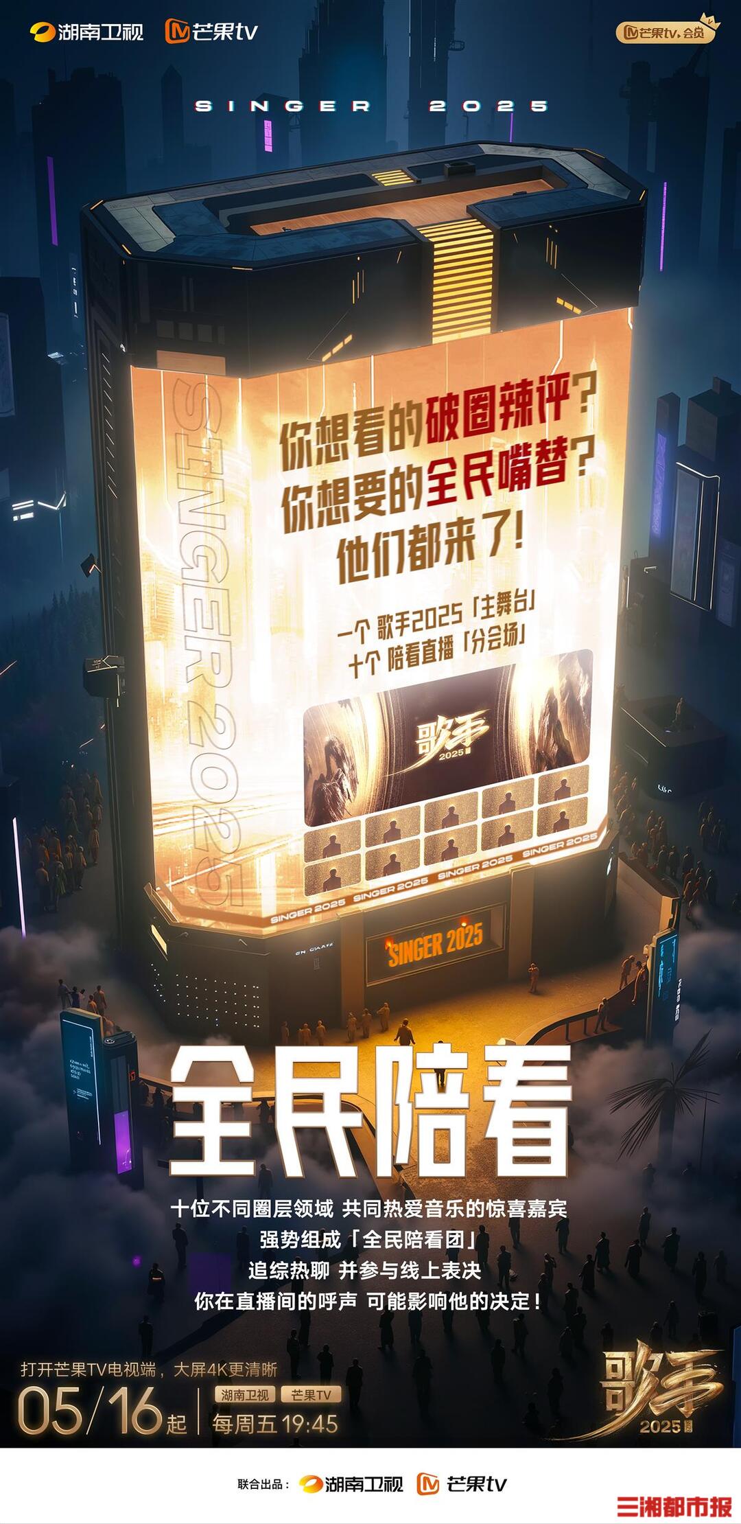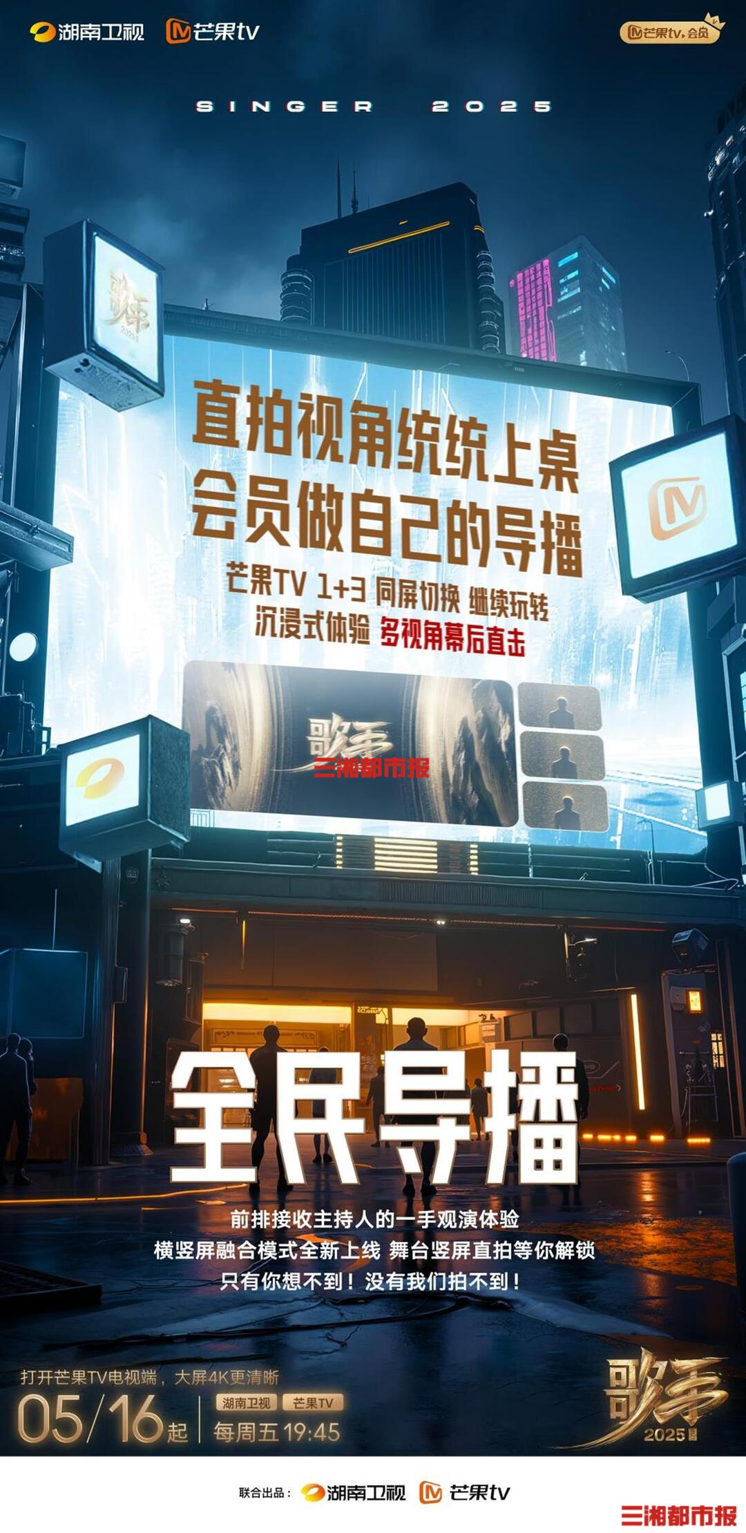 5月16日晚,湖南卫视音乐竞技综艺《歌手2025》将以全开麦直播形式回归。本季节目聚焦“全民互动”与“技术赋能”,通过四大维度创新玩法及多项技术升级,打破线上线下边界,为观众呈现全景沉浸式视听盛宴。