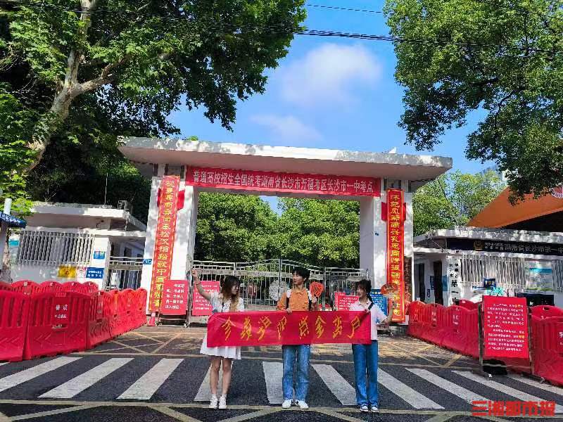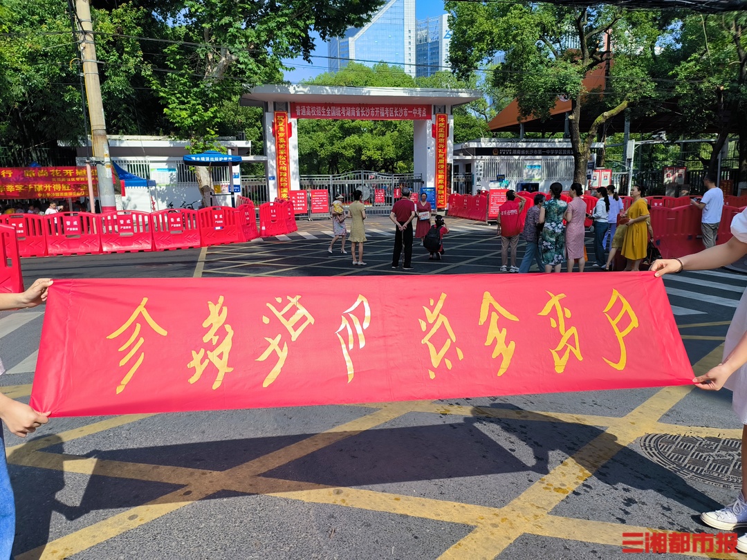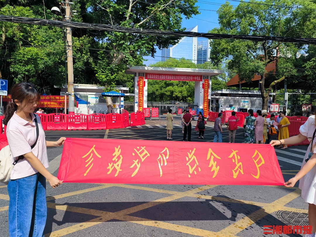 6月9日,长沙市一中考点,一中毕业的学姐带着一同研究江永女书的小伙伴带来了祝福,祝学弟学妹们“金榜题名 前程似锦”。(全媒体记者 王智芳)