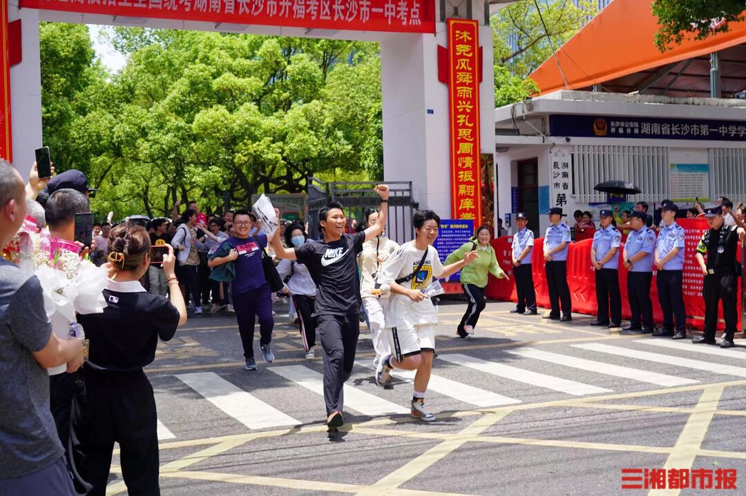 6月9日中午,高考第三天第一波下考来了!长沙市一中的考生激动地把老师高高举起。愿少年笔锋所致,梦想开花,加油!