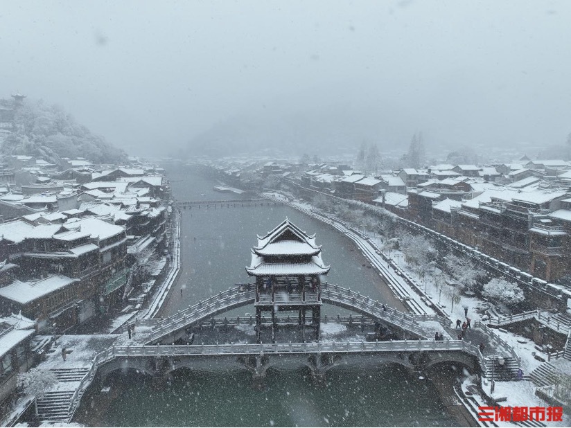 三湘都市报1月22日讯(全媒体见习记者 曾冠霖 通讯员 吴东林)1月22日,凤凰古城迎来今年首次降雪,一夜之间,美丽的凤凰古城处处银装素裹,雪景如画,如梦似幻,美若仙境。走进古城之中,一片片雪花翩翩起舞,纷纷扬扬洒落在悠悠沱江河上,雪花漫天卷落,犹如一幅绝美水墨画。沱江两岸的吊脚楼、跳岩、乌篷船也已披上了一层薄薄冬装,白瓦红墙、飞檐斗拱相互交错辉映,呈现出别样的动人景致。当天,众多游客市民满怀喜悦,逛古城穿苗服赏雪景,畅游在美景中拍照打卡古城“最美雪景”。
