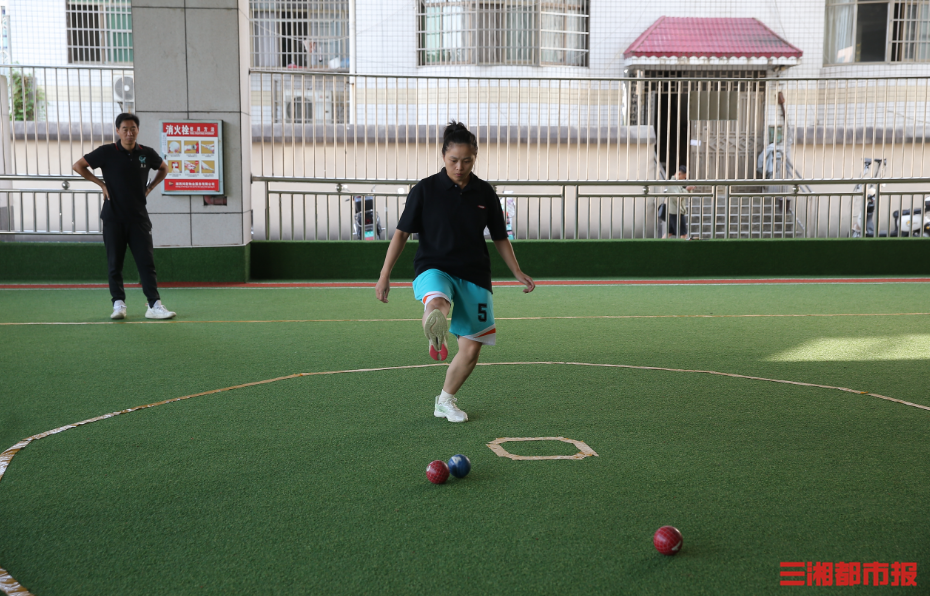 蹴球原名“踢石球”,由我国古代蹴鞠运动发展而来。在10米×10米的正方形平坦赛场上,一红一蓝两个球格外显眼,被玩家们称为“脚下斯诺克”,蹴球教练员彭军懋正在一旁指导训练。“蹴球是花垣具有代表性的一个传统体育项目,在省内也取得了很多优异成绩。”在湖南省第十届少数民族传统体育运动会女子单蹴比赛中,彭军懋的女儿彭凡力发挥出色,顺利挺进决赛并斩获银牌。虽然不像足球一样需要在大场地上来回跑动,但运动员仍需要较好的身体素质,彭军懋向三湘都市报记者介绍,“除了日常训练,我们一般会在大赛前组织队员集训。”