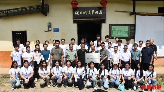 三湘都市报7月12日讯(通讯员 黄启武 王舒 李雨阳 何钟毓)一件叠放整齐、带着岁月痕迹的旧军大衣静静陈列在展柜中,开国将军杨世明之子杨中朝的手掌轻轻拂过玻璃,向围拢的三十余名大学生讲述父亲当年在抗日战场上浴血奋战的峥嵘岁月……7月9日下午,浏阳市金刚镇这座承载着烽火记忆的将军故居,迎来一堂特殊的思政课,正在浏阳市昭明完小开展“三下乡”活动的湖南第一师范学院师生在“开国将军杨世明故居思政教学实践基地”正式揭牌。