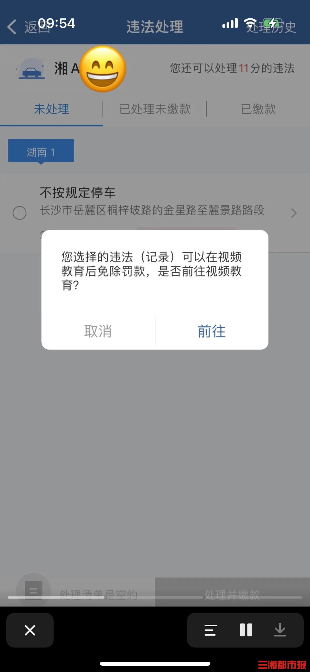 三湘都市报5月30日讯(全媒体记者 虢灿)看30秒视频免掉了100元罚款?长沙司机刘先生在手机上处理交通违法时就遇上了,他还不敢相信特地发朋友圈求证。5月30日,记者了解到,今年5月初,交管12123APP在系统更新中提示“违法处理新增学法免罚”,看30秒交通违法警示视频,将对符合条件的交通违法免除罚款,但“学法免罚”有不少条件限制。