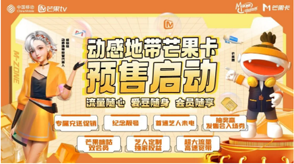 中国移动与芒果TV进行“科技+文化”的跨界融合,广大用户可以通过多渠道进行线上预约,预约即可参与惊喜抽奖。7月13日之前完成预约,有机会抽中“时代有我 光芒万丈 中国移动动感地带芒果卡发售会”入场资格!