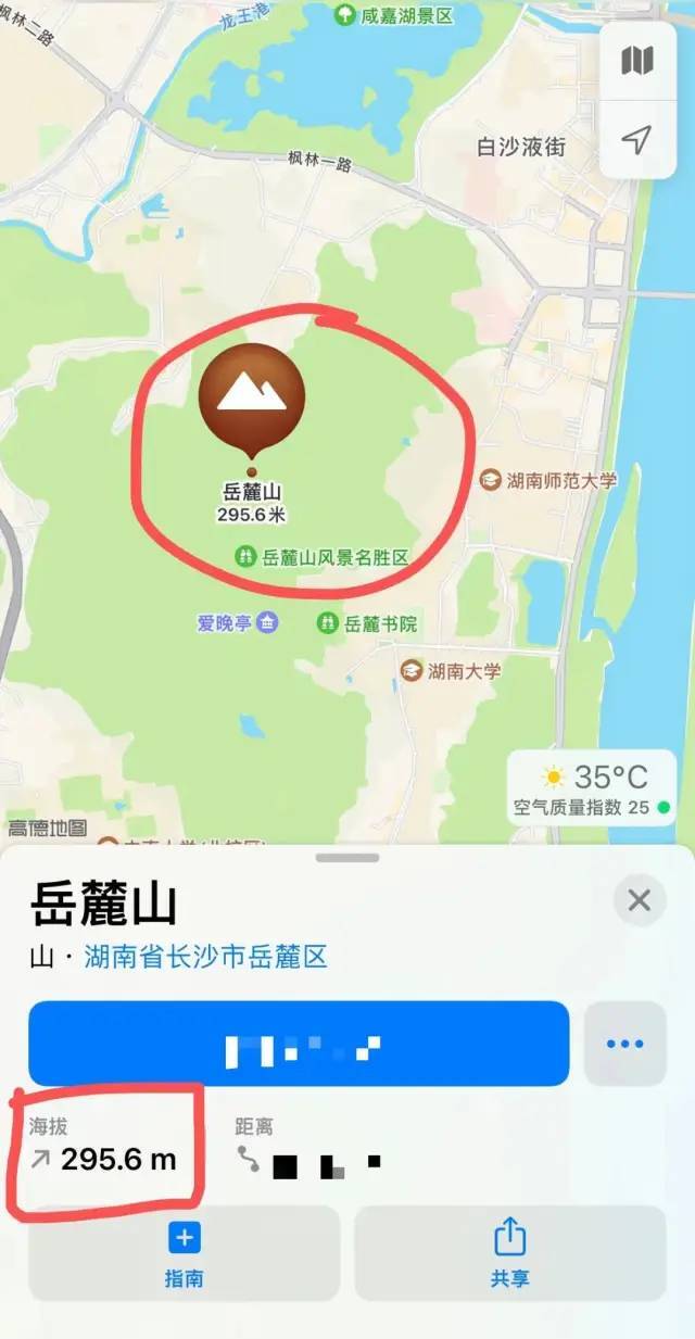 有网友向潇湘晨报记者爆料,发现谷歌地图上显示岳麓山的海拔为295.6m,而历年来官方数据一直显示岳麓山海拔为300.8m。