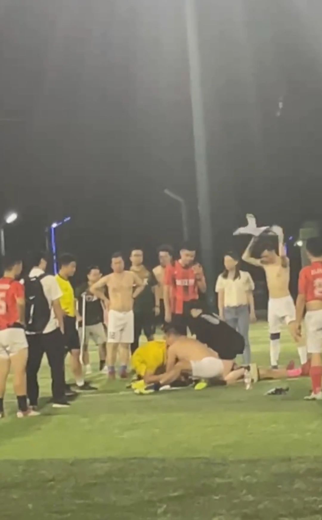到了晚上8点半,三个小组已经踢了几轮,但意外突然发生。在场裁判吴荣光介绍,当时他看到一名球员胸部连停带传一个长传球,立马接回传球完成一个远射后,突然倒地晕厥。