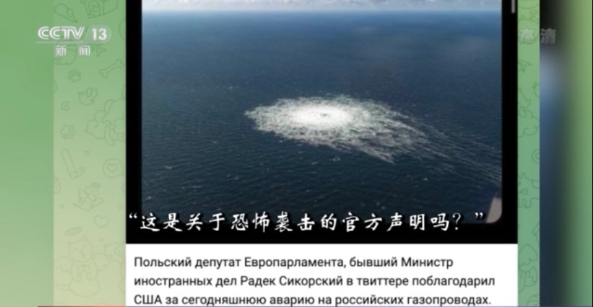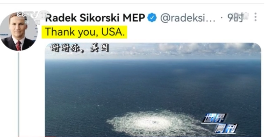 随后,西科尔斯基又发布了一张本周北溪天然气管道发生事故的现场照片,并配文称:“谢谢你,美国。”这一发布在互联网上引起不小波澜。