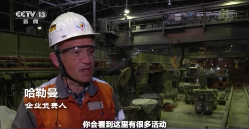 企业负责人 哈勒曼:通常情况下,钢水会流经这个生产设备,你会看到这里有很多活动,温度会很高,今天你能感觉到非常冷,因为钢铁厂已经关闭,没有生产活动,
