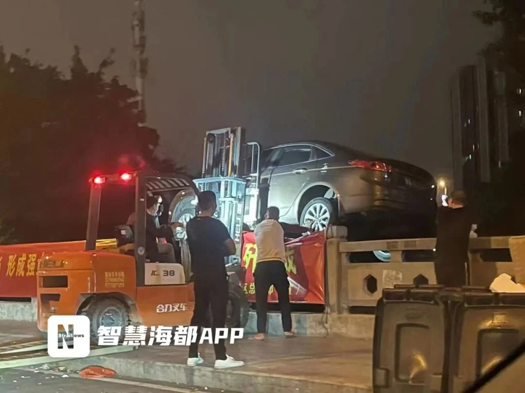 车位被占对方不挪,业主直接让叉车把车丢河里