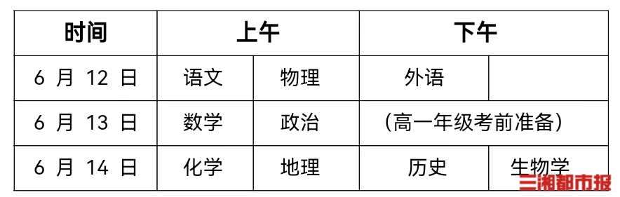 三湘都市报·新湖南客户端1月12日讯(全媒体记者 杨斯涵 黄京) @高一高二学生,今年高中学业水平合格性考试时间定了!近日,湖南省教育厅下发《关于2023年我省普通高中学业水平合格性考试的通知》,明确今年考试时间为2023年6月12日-14日。