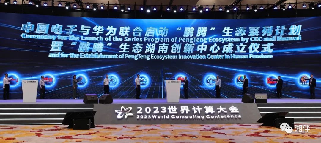 9月15日,在2023世界计算大会开幕式上,中国电子与华为联合启动“鹏腾生态系列计划”。同时,“鹏腾”生态湖南创新中心正式揭牌。湖南日报全媒体记者 张京明 摄